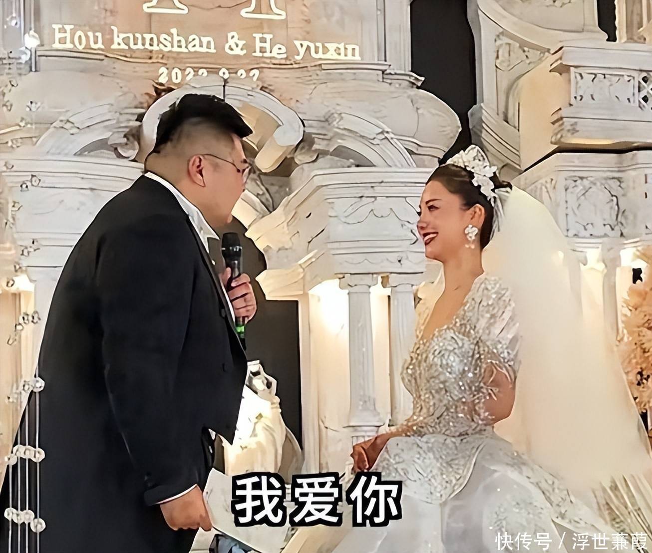 两人于2020年相识,2022年2月登记结婚,同年9月举办婚礼,现场布置奢华庄重,宾客云集。
